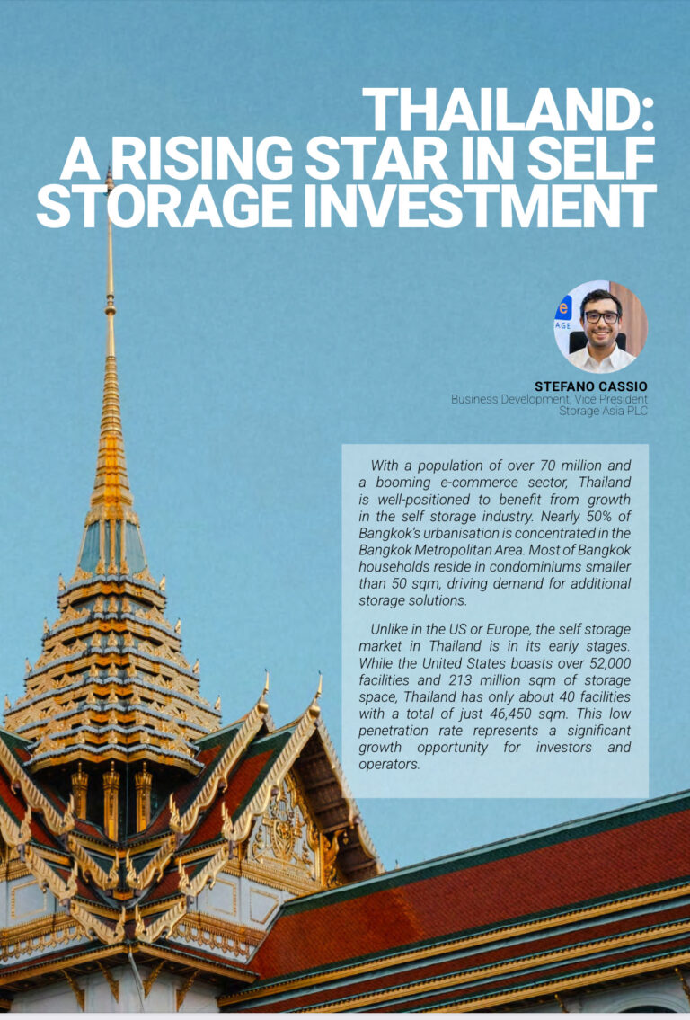 ปัจจุบันประเทศไทยมีประชากรมากกว่า 70 ล้านคน และมีอัตราการเติบโตของธุรกิจ E-commerce อย่างมาก ส่งผลให้ประเทศไทยอยู่ในช่วงที่เหมาะสมสำหรับการขยายตัวของธุรกิจ Self Storage โดยเฉพาะในเขตกรุงเทพฯ ที่ประชากรกว่า 50% อาศัยในพื้นที่คอนโดขนาดเล็กกว่า 50 ตร.ม. ซึ่งขนาดพื้นที่ที่จำกัดนี้เอง ทำให้ความต้องการการใช้ Self Storage เพิ่มมากขึ้น